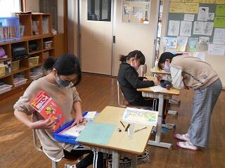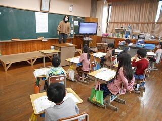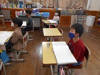 2年生の図工では、画用紙に「まど」を作る工作をしていました。先生が、代表的な「まど」を紹介して子どもたちが作っていました。どんな作品になるのか楽しみです。1年生は、音楽室で「きらきらぼし」に合奏の練習をしていました。難しそうにしていましたが、それぞれの子どもたちががんばって練習していました。他の学年も、楽しそうに学習に取り組んでいました。
