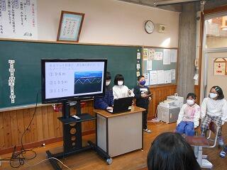土曜日(22日)の深夜の地震にはびっくりしました。被害はなかったようですが、日頃から地震への備えをしておかないといけないと改めて考えさせられました。今日の子どもたちも、寒さに負けず、元気です。2年生は、1m定規を使って教室や広間の長さを測っていました。友だちと協力しての活動が楽しそうでした。