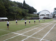 練習開始早々、雨がぱらつき始めましたが、体育主任の号令による全員での天に向かっての大きな笑い声と、みんなの意気込みのお陰か、そのうち雨も上がり、無事練習を続けることができました。さらに、全員が集中して頑張ったことで、予定時刻より早く練習を終わることもできました。