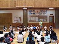 続く2・3年生の発表は、詩の群読に合奏と合唱でした。詩の群読では、1年生で習う漢字80字が全て使ってあるという詩を、自分たちで80字の漢字を書いて貼り付けた模造紙を持って、大きな声で群読してくれました。そして、3年生の音楽の教科書に出てくる楽曲「レッツゴー ソーレー」をリコーダーと鍵盤ハーモニカで上手に合奏し、最後に、同じく教科書にある「世界中のこどもたちが」を元気に合唱しました。ホール中にきれいな音色や元気な声が響き、2・3年生らしさを発揮した発表になりました。