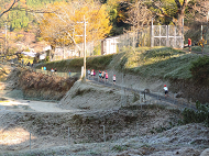 外周コースには、下り坂と登り坂があります。最大高低差が約10mあり、後半が登りとなるので結構きついコースです。しかし、高学年の中には、5分間で3周以上走った子どもたちもいました。次回の練習では、1~3年生が外周、4~6年生が運動場周回コースです。1~3年生も苦しい坂道をめげずに乗り切ってほしいです。