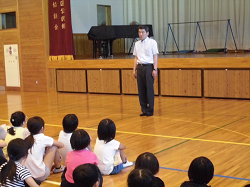 体育館で、警察署の方から、「いか・の・お・す・し」や、防犯ブザーの点検、そして、先月の新潟での事件をもとに登下校の安全などについてお話をいただきました。