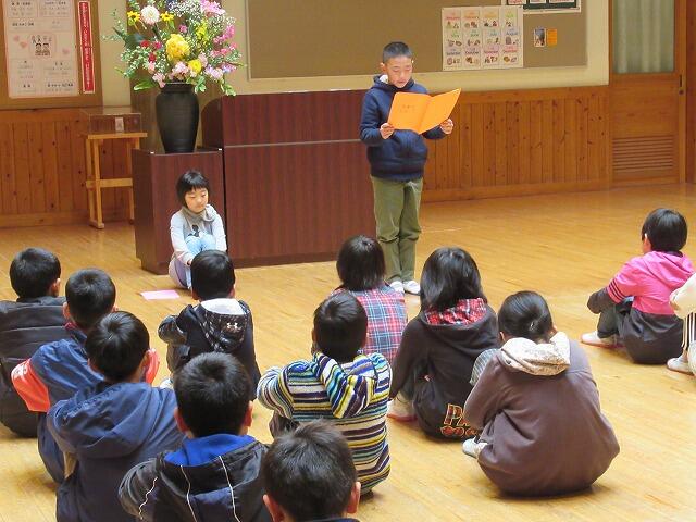 児童代表の作文発表では、2人のお友だちが昨年度の自分を振り返って、今年度がんばりたいことや目標を自信をもって発表してくれました。