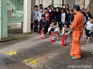 その後、消化器の使い方を学んだり、煙体験を行ったりしました。特に、煙体験では、煙によって前が見えない怖さを実体験することができたようです。