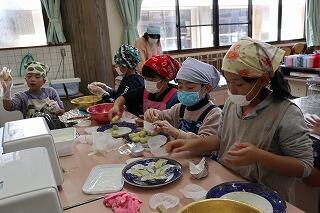 地域の方々が来る前に、収穫したお芋でおやつを作りました。