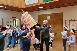 本校からは、5年生の子どもや卒業生が、地域の伝承を守ろうとほしゃどん(舞い手)の一員として参加しました。