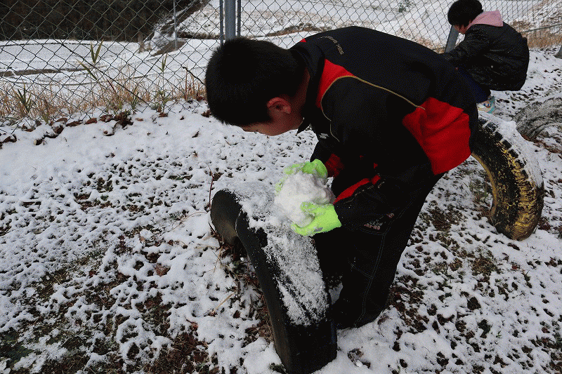 前日から雪が舞っていましたが、あまり積もらず残念だった子どもたち!ところが、昨夜も雪が少しずつ降っていたようで、学校に登校すると銀世界!