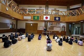 本校では、臨時の全校朝会を開き一斉指導を行いました。