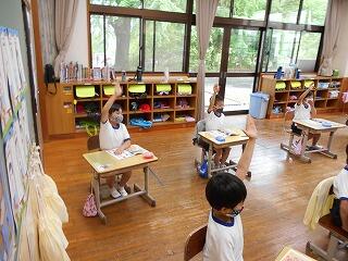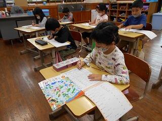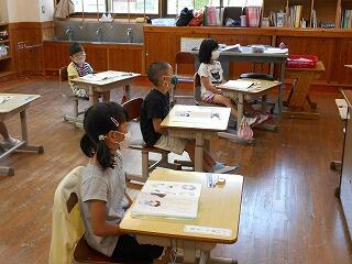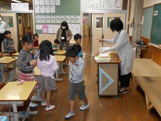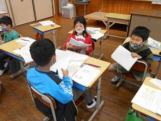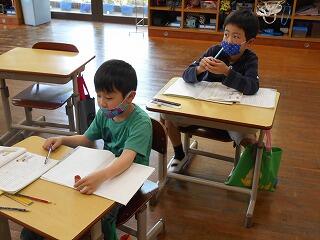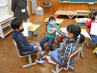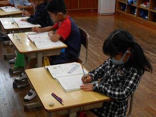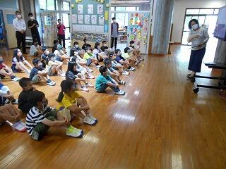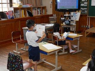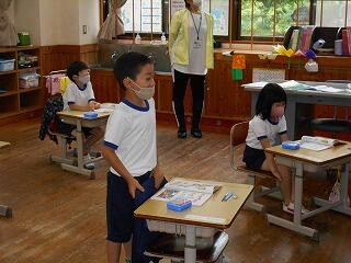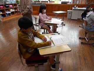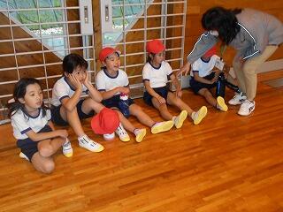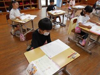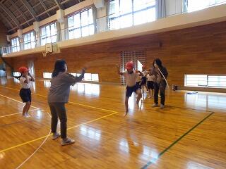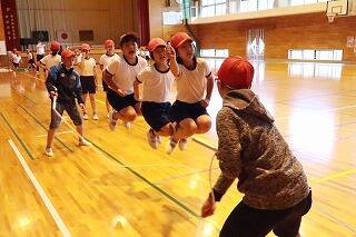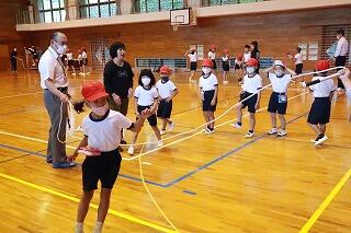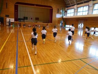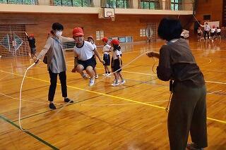 今朝は体力作りのための、大縄とびがありました。各学年に応じた大縄とびを行っていました。1年生は、初めてだったようで、少しずつとべるようになっていました。5・6年生は、いろいろなとび方をしていました。さすがでした。