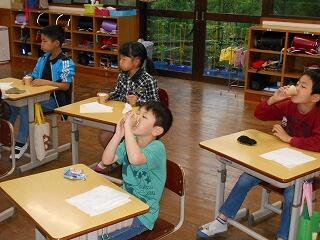 午前中は雨模様でしたが、午後からは雨が上がりホッとしたところです。梅雨なので雨が降るのは仕方ないのでしょうが、激しいのは遠慮したいところです。今朝は、今年初めての「フッ化物洗口」が行われました。それから、6年生は,全国学力調査で国語と算数の問題に取り組んでいました。よくがんばっていました。