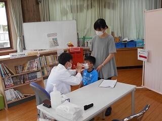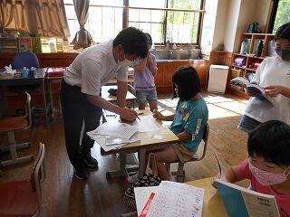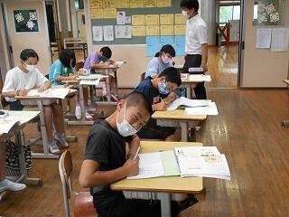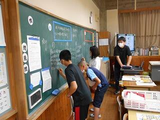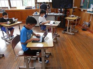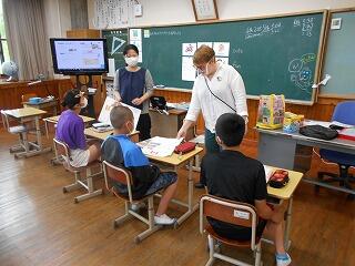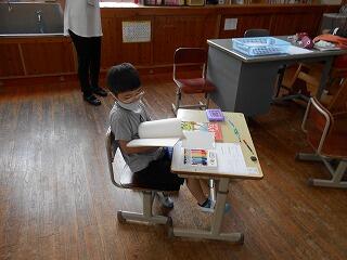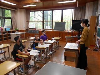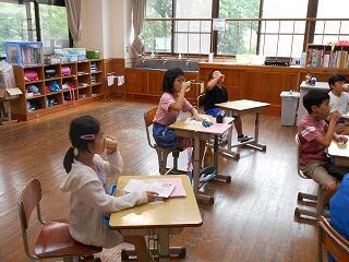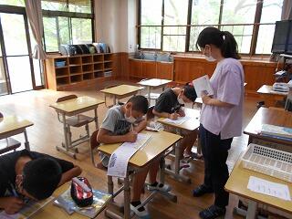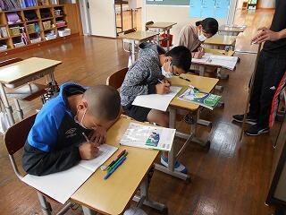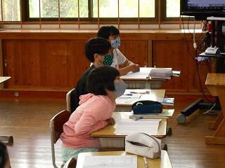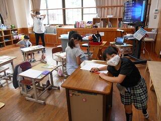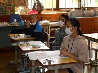 5・6年生は、調理実習がありました。1・2年生は、水泳の授業で少し寒そうでした。全体では、眼科検診が行われました。熊本から眼科の先生が来られての検診でした。町内の5つの小学校を1日で回ったということでした。