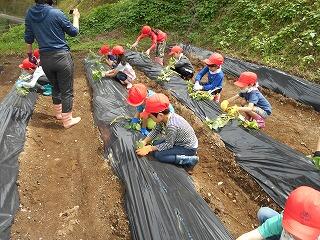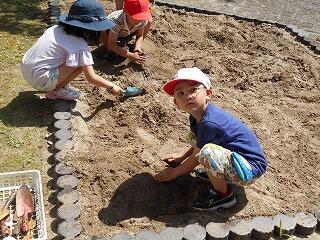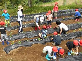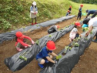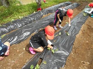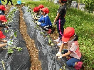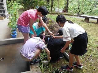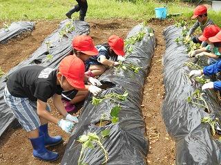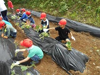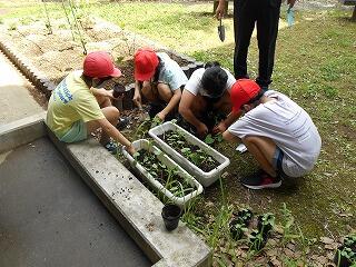 昼休みに、地域の方に来ていただいて花の苗植えをしました。一人一鉢の花と学級園、それから、児童玄関前のプランターに花を植えました。少し暑かったですが、しっかりと植えることができました。協力してくださった皆様に感謝です。
