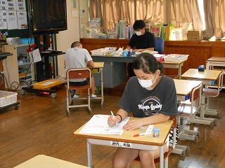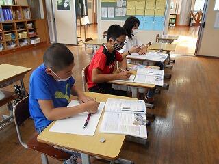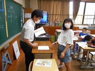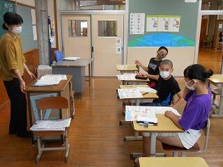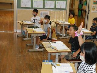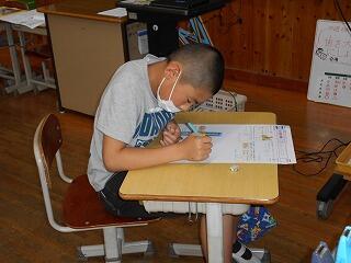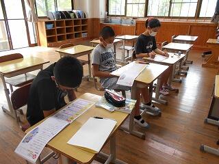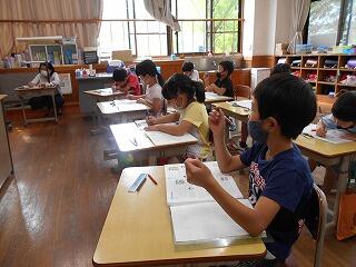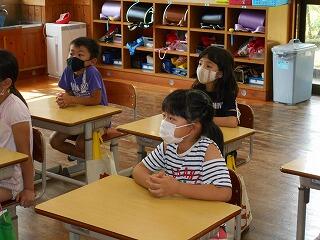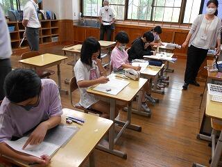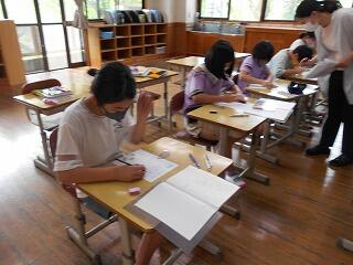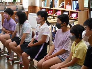 昨日に引き続き、とても暑い日になりました。5時間目に4・5・6年生が水泳の授業を行いましたが、プールサイドがとても熱くなっていて、あわてて水をかけたところでした。それから、今日は不審者対応の避難訓練も行いました。子どもたちは、とても真剣に話を聞くことができました。もしもの時の備えについて理解が深まったようです。