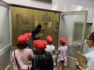 4年生が社会科見学で、西臼杵衛生センターに見学に行きました。まずはじめに、空き缶の処理の様子を見せてもらいました。所員の方がスイッチを押すと、大きな機械が動きだし、スチール缶とアルミ缶が分別され、プレスされて、直方体になって出てきました。その様子に子どもたちも大興奮です。それから可燃ゴミの投入口や不燃物の分別の様子、資源物の処理の仕方などの説明を受け、監視室の中も見せてもらいました。