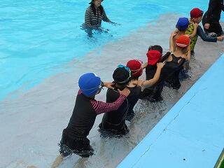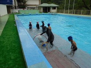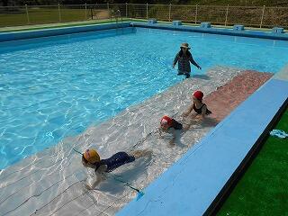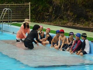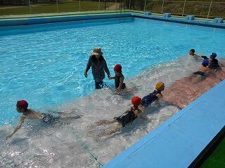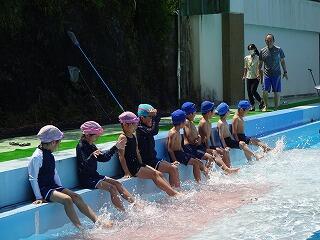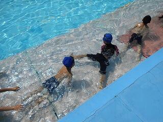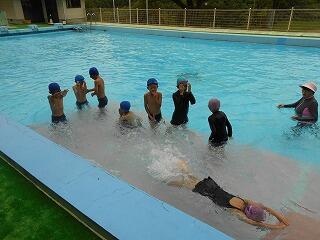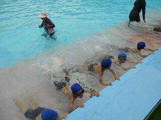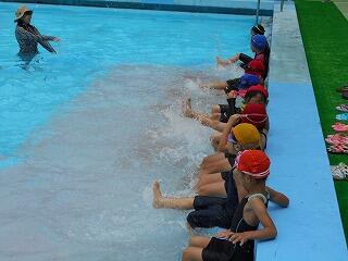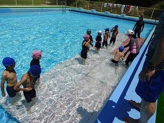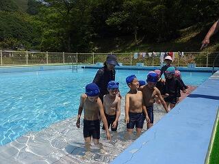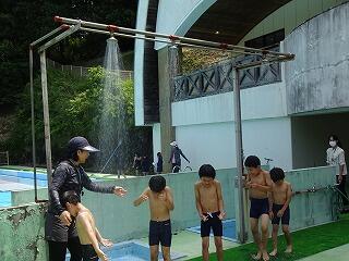 いよいよプールでの水泳学習が始まりました。2年生が、3時間目に、1年生が5時間目に行いました。3時間目は、少し寒かったですが、5時間目の1年生は、気持ちよくプールでの学習を行うことができました。