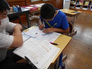 からくもり空でしたが、午後からは雨になるのかもしれません。午後から水泳の授業が予定されているので、雨が降らないといいなと願っています。今日は、都合により午前中の子どもたちの様子になります。