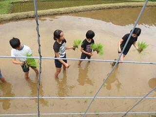 今日は、5・6年生が田植えをしました。6年生は3回目ということで、手慣れた様子で田植えを行っていました。5年生は、どろんこになりながらでしたが、楽しそうに活動することができていました。ご指導いただいたJAの皆さんに感謝です。