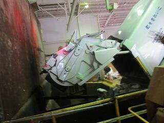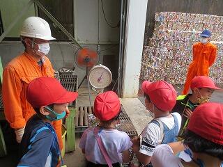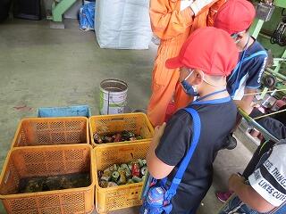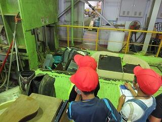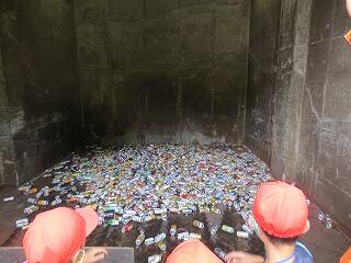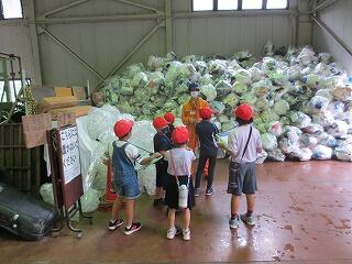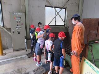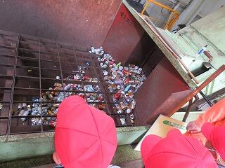 4年生が社会科見学で、西臼杵衛生センターに見学に行きました。まずはじめに、空き缶の処理の様子を見せてもらいました。所員の方がスイッチを押すと、大きな機械が動きだし、スチール缶とアルミ缶が分別され、プレスされて、直方体になって出てきました。その様子に子どもたちも大興奮です。それから可燃ゴミの投入口や不燃物の分別の様子、資源物の処理の仕方などの説明を受け、監視室の中も見せてもらいました。