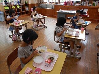 9月1日、防災の日です。押方小でも、地震の避難訓練を行いました。子どもたちは、とても真剣に取り組んでおり、2分かからずに避難することができました。それから、給食では、冷汁がでました。家庭ではなかなか食べないということで、子どもたちは、おいしそうに食べていました。