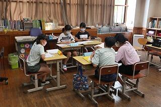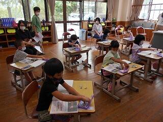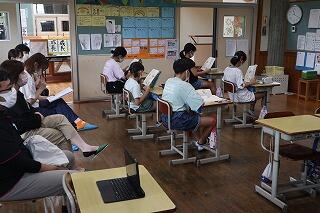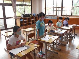 今朝は、久しぶりの読み聞かせでした。ボランティアの皆さん、ありがとうございました。子どもたちは、とても楽しそうに聞いていました。それから、急きょ「がまだせ節」の確認を5・6年生で行いました。私は、初めてでしたが、いろいろな動きがあって覚えるまでいきませんでした。子どもたちは、「そうやったね。」といいながら、思い出すことができたようでした。