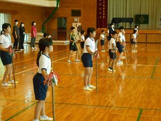 予定した運動会の予行練習は、雨のため木曜日に延期となりました。残念ですが天気には勝てません。木曜日が晴れることを祈るばかりです。ちなみに、なぎなたの踊りは、演奏の方が来てくださったので、最後の練習を行いました。子どもたちは、しっかり覚えてくれたようでした。明日は、土曜日の代休のため休みになります。予定が変更されましたが、今日もがんばっていた子どもたちでした。