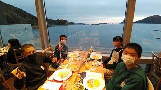 南郷プリンスホテルに泊まりました。夕食は、テーブルマナーを教わりながら、コース料理をいただきました。