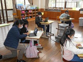 1年生から4年生までは、高千穂小学校で合同学習会でした。楽しみにしていた子が多かったようです。それから、5年生だけは、学校に残っての学習でした。自分たちだけで学校を自由に使えると楽しそうにしていました。