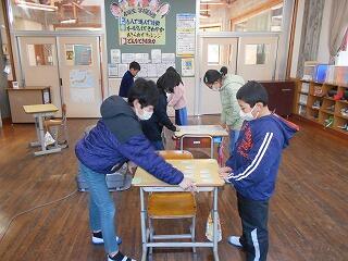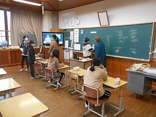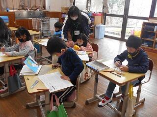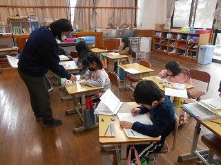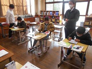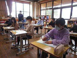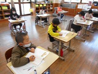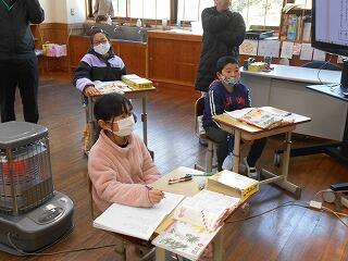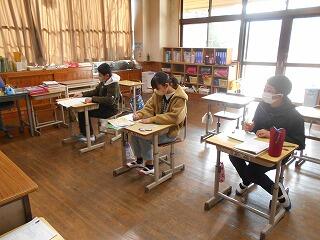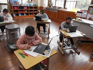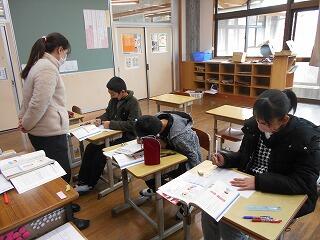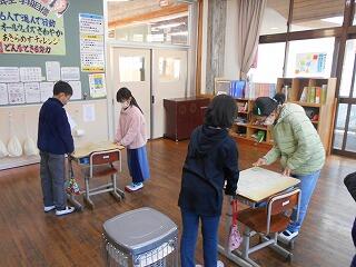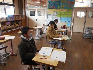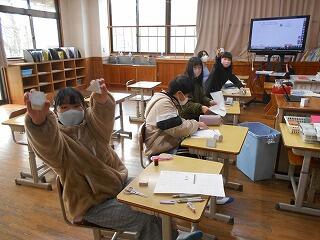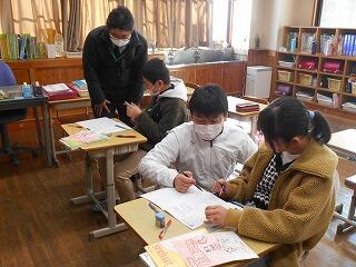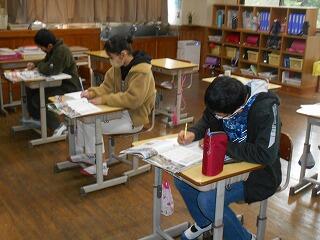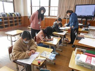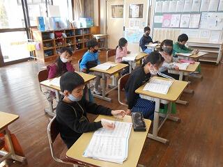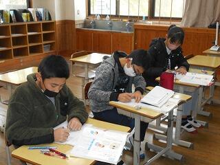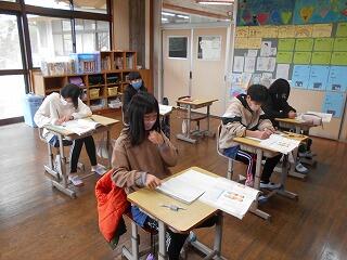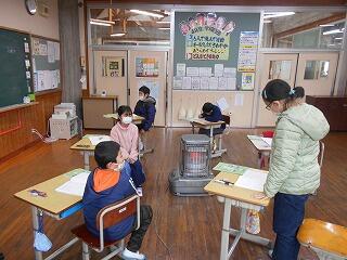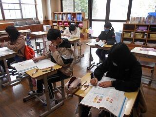 今朝は雪が舞う中の登校でした。そして、日中も雪が舞っていたので、とても寒い1日となりました。寒い中でしたが、子どもたちは元気に過ごすことができていました。5・6年生が、朝から習字をしていたので1・2時間目の様子を紹介します。