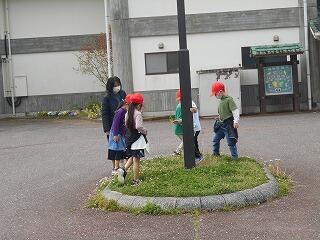 天気予報通りに雨が降りました。昼休み時間はちょうど雨がやんでいたので、5・6年生は、運動場でソフトボールのような遊びをしていました。それぞれの学年に分かれて昼休みを過ごしているので、早く全校で遊べるようになるといいなと考えています。