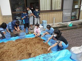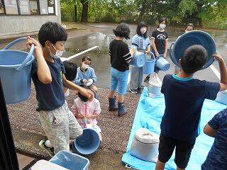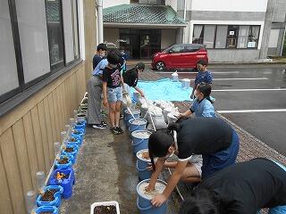 天気予報通りの雨となりました。5・6年生が、バケツ稲の準備をしていましたが、どうにか雨になりませんでした。しかし、5時間目に予定していた「種まき」は、体育館下に移動しての活動になりました。どうにかできてほっとしました。