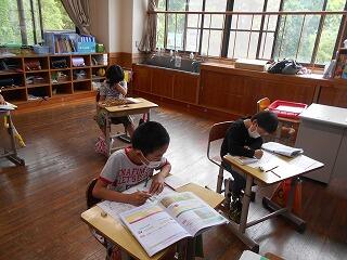 とても天気のいい1日でした。午後からプール清掃なので、低学年の子どもたちは、4時間授業でした。高学年の子どもたちは、プール清掃が楽しみなようで、水着などの話で朝から盛り上がっていました。