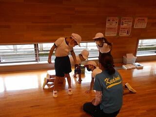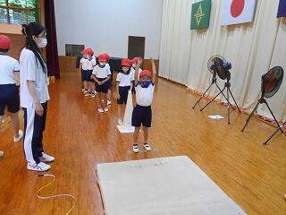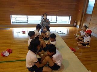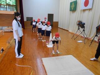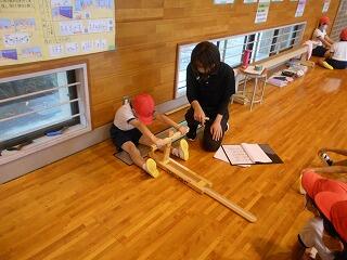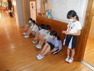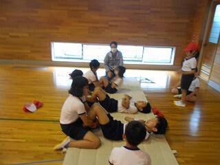 スポーツテストを行いました。運動場がまだ使えなかったので、体育館での種目を全部行いました。子どもたちは、6年生を中心にした縦割り班に分かれての活動でした。高学年は、昨年の記録を超えることができるようにと、がんばっていました。