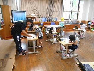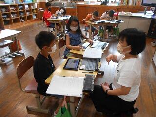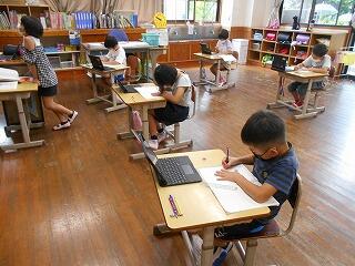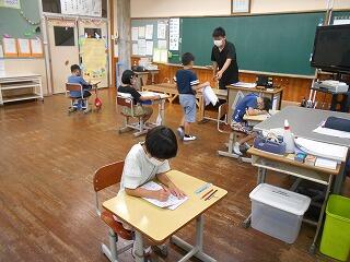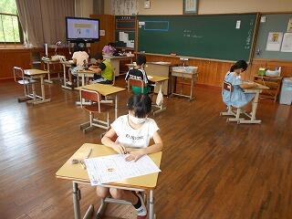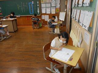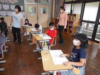 厳しい暑さが続いていますが、子どもたちは元気に活動しています。1学期のまとめをしている学級もありました。漢字や計算など、4月5月に学習した内容を忘れていることもあるようです。繰り返しやっています。