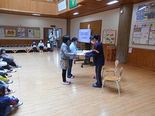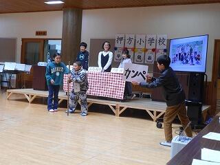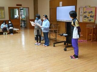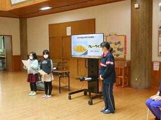 給食感謝集会が行われました。保健委員会の子どもたちが準備を進めていたものです。調理員の2人の先生に参加してもらい、給食への感謝を子どもたちに感じてもらいました。その中で、子どもたちが選ぶ人気の給食メニューの紹介がありました。5位「ヤンニョムチキン」、4位「あげパン」、3位「神楽うどん」、2位「たこやき風」、1位は、ぜひご家庭で聞いてみてください。ほとんどの子どもたちの大好きなものでした。