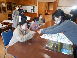 今朝は、高千穂町役場、総合政策課の方が2名来校され、6年生にユネスコエコパークのしおり贈呈式が行われました。卒業する6年生5名に菊ノ宮神社のご神木から作られたしおりが送られました。高千穂町内の小学6年生に贈られるそうです。宮日と夕刊デーリー新聞の方がこられていたので、記事にしてくれるのかもしれません。6年生の代表がインタビューに答えていました。読書をする中で、しおりを見るたびにユネスコエコパークについて思い出してもらいたいということでした。