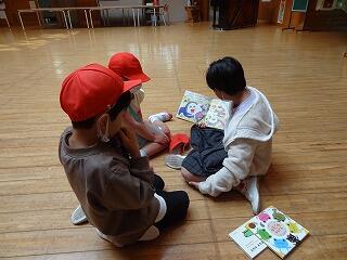 ◎ 本しりとりゲーム:本の題名でしりとり。4・6年生がやっている間、1・2・3年生は読み聞かせをしていました。