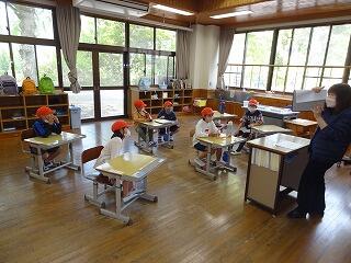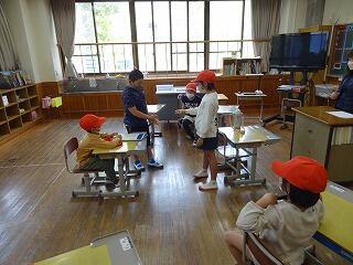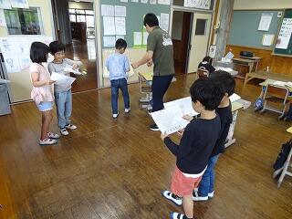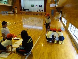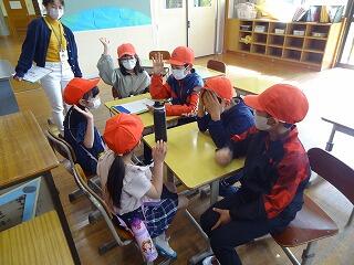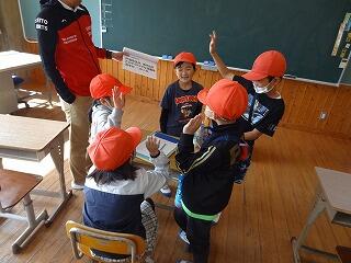 5月2日(火) 春の遠足で校内ウォークラリーを行いました。6つの縦割り班に別れ、校内に設置してあるコーナーでクイズを考えたり、ゲームをしたり、班の人たちと声をかけ合い、協力して最高点めざしてがんばりした。