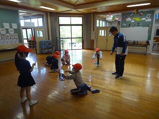 ◎ ボーリングゲーム:5つのピンにめがけて、ボールを転がします。ストライクも出ていました。
