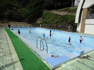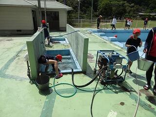 5月26日(金) 5・6時間目に3・4・6年生でプール掃除をしました。プールの周りや壁、床をデッキブラシや亀の子たわしでゴシゴシこすって、きれいにしました。高圧洗浄機等は保護者の方にもご協力いただきました。ありがとうございました。