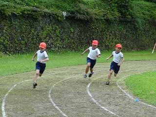 8月30日(水) 明け方から雨でしたが、運動会へ向け雨の合間を縫って全校児童の「走力調査」を実施しました。