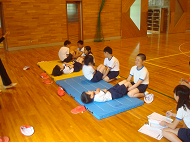 ☆ 「20mシャトルラン」、これが一番きつい種目です。終わった後は、みんなバッタリ!疲れた~!!