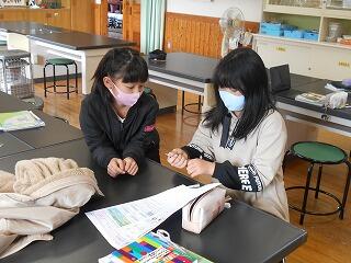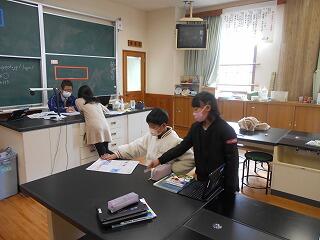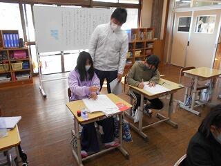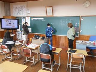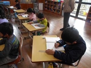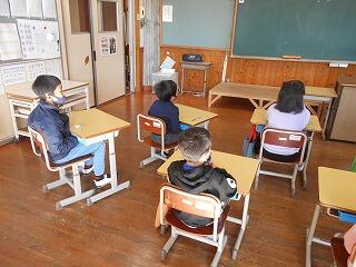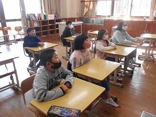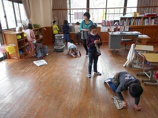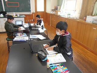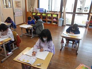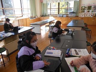 今朝も一面が真っ白になっていました。霜が降りて、霜柱ができていました。そんな中ですが、子どもたちは今日も元気にがんばっていました。4年生は、国語の授業で切り株の上に4人の子どもがのるという話があったようです。自分たちで、椅子の上に4人でのってみたようです。