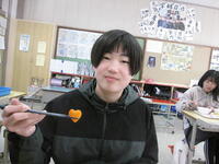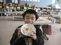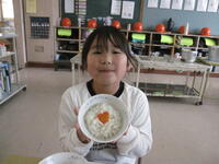 今日の給食は、今年最後のしあわせにんじんの日でした。