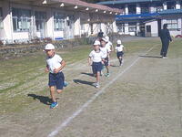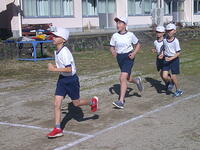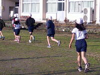 1・2年生は4周、3・4年生は5周、5・6年生は6周運動場を走りました。