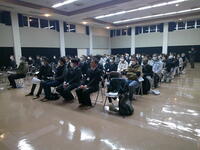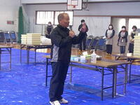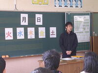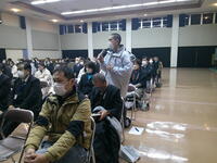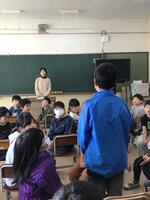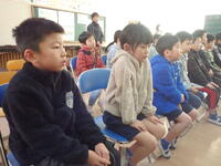 寒さが残っている体育館でしたが、低学年児童も先生の話をしっかり聞いて、