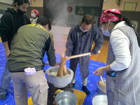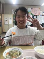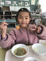 もちつき終了後は、調理員の先生が作って下さった豚汁をもちと一緒に全員でいただき、本当においしかったです。