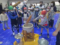 参観授業が終わった後は、子どもたちが待ちに待ったもちつき大会。
