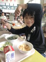 6年生は1~4年生、先生達に迎えられ、おしゃべりを楽しみながら給食を食べました。ふだんと違う教室で食べるのも新鮮で楽しかったようです。これまで使ってきた教室を回ることで、思い出されることもあったことでしょう。