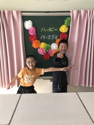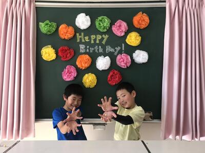 11月のバースデイランチの様子です。2名の児童が誕生日を迎えました。
