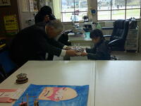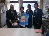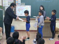 そこで、町内の1年生を代表して、本日「神楽のモチーフ贈呈式」が校長室で行われました。